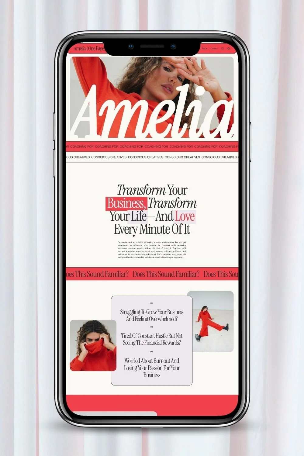 Designed as a streamlined one-page experience, Amelia is ideal for launching or reinventing your brand with clarity and ease. The layout is structured to communicate your offering, story, and value without overwhelming your audience, while leaving room to grow. Additional pages can be added seamlessly as your business evolves, keeping your site cohesive as you expand.