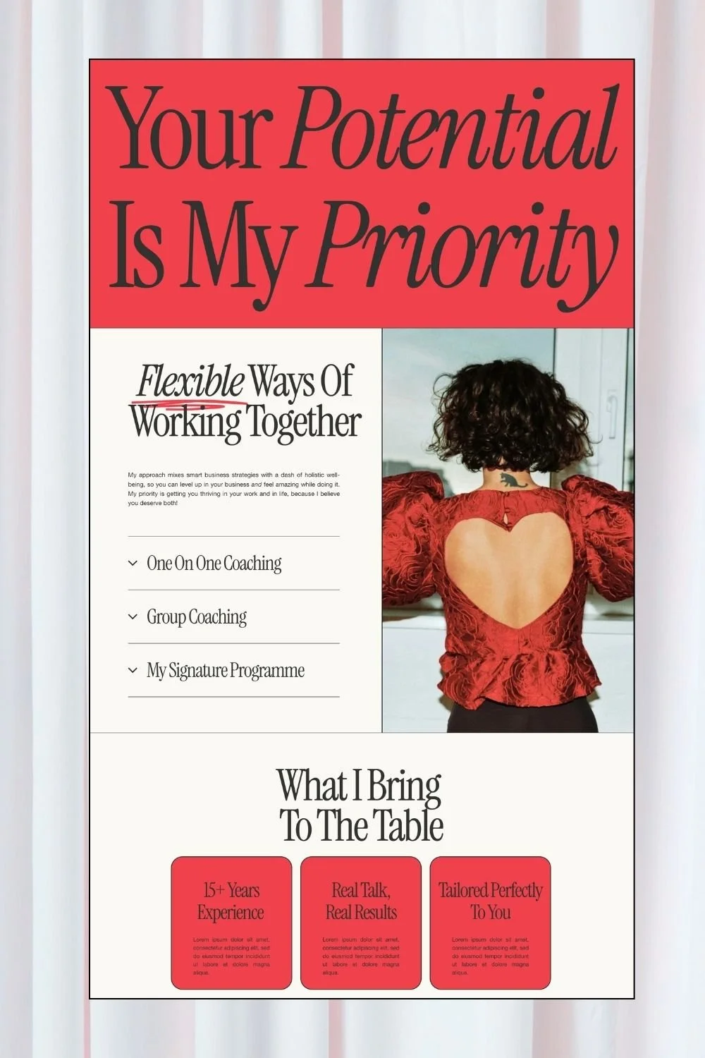 Created for coaches, consultants, and mentors, it features a refined layout, balanced typography, and thoughtfully structured sections that guide visitors through your story, offering, and message with ease.