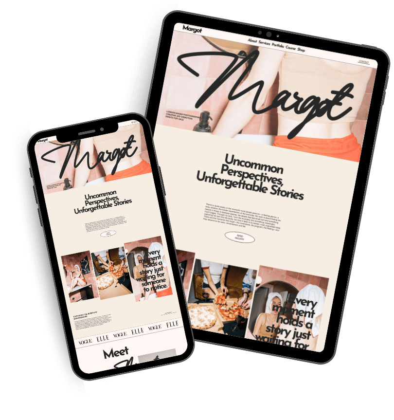 Confident, content-rich, and built to support serious functionality, Margot is created for creatives and entrepreneurs who need a website that can both showcase their work and sell their offers with ease.
