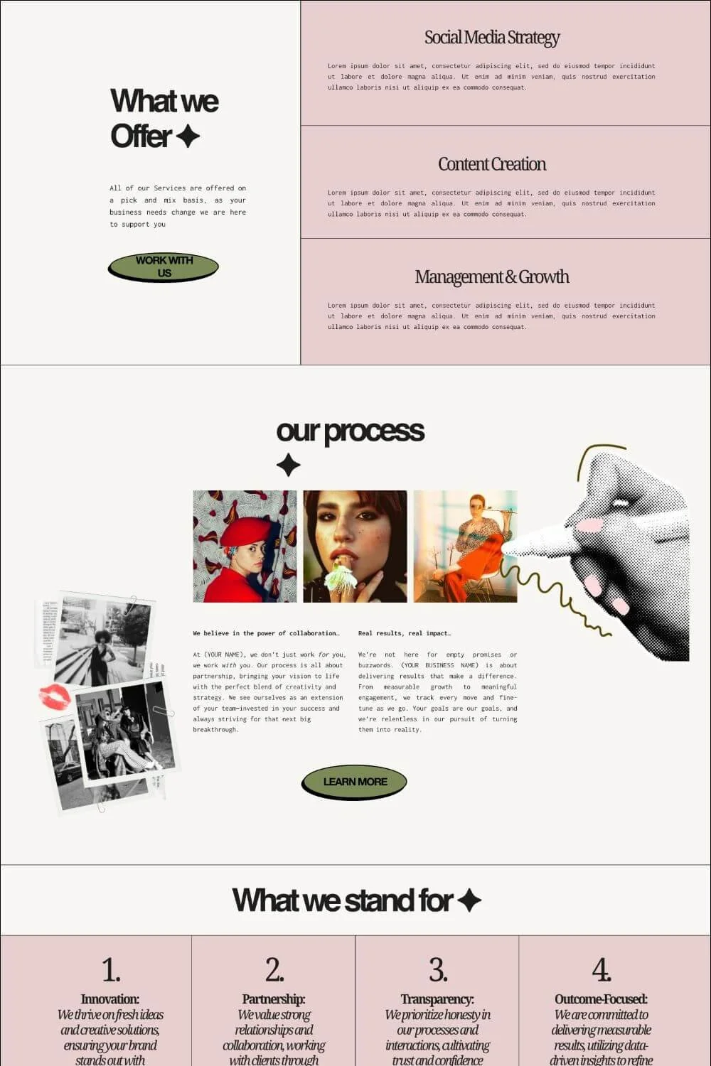Created for social media managers, content creators, and creative entrepreneurs, it features bold layouts, clear page structure, and considered design that supports both strong branding and clear communication of your services.