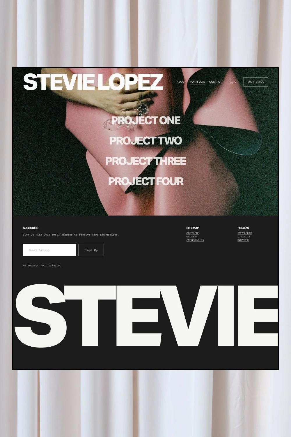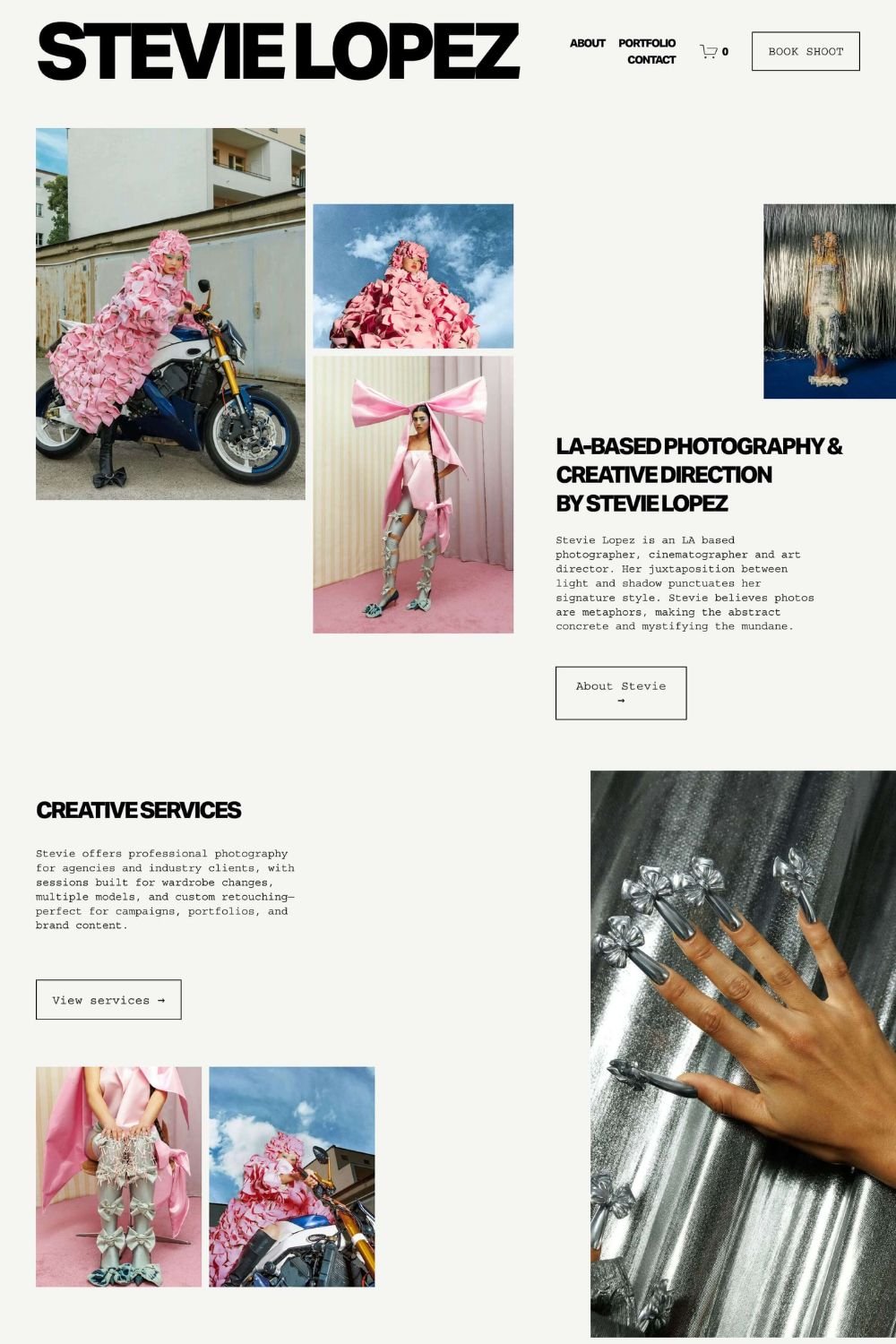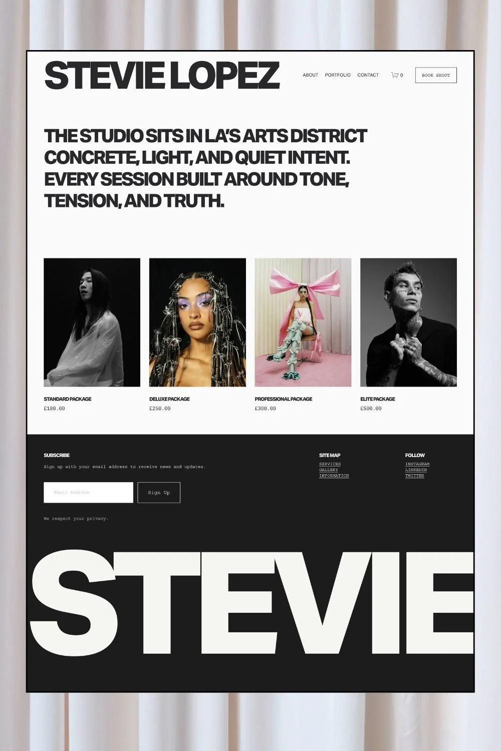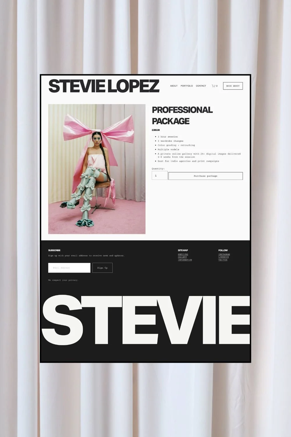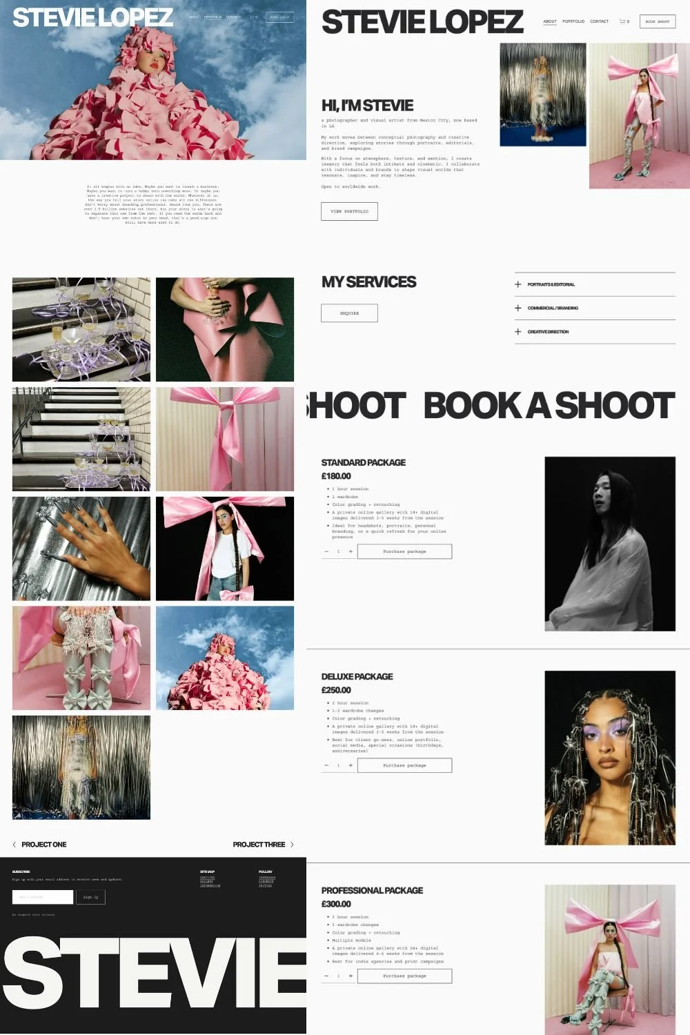 Clean, confident, and designed to let your work lead, Stevie is created for photographers, stylists, and visual creatives who want their brand to feel modern, polished, and unmistakably professional.
